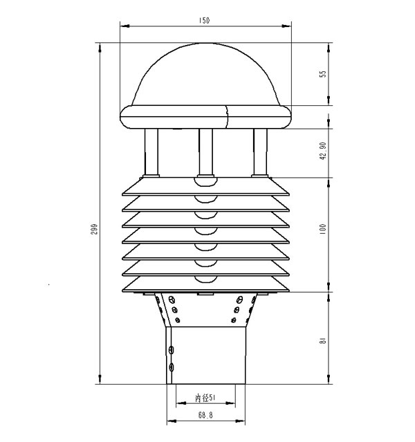 8.光学雨量(标配):量程:0-4mm/min;分辨率0.01mm;精度:≤±4%